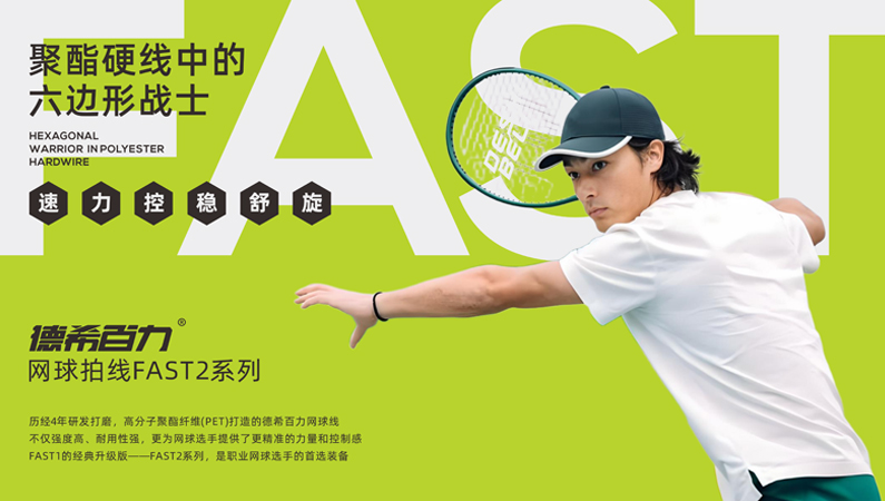 我們依托深厚的行業(yè)經(jīng)驗(yàn),成立高分子新材料研究實(shí)驗(yàn)室,自主研發(fā)出獨(dú)特材質(zhì)配方與專利高分子聚酯新材料,打造出顛覆性的FAST2系列網(wǎng)球拍線。FAST2系列不僅繼承了硬線的超強(qiáng)的控球精準(zhǔn)性、高旋轉(zhuǎn)性和高耐用性,更巧妙融合了軟線的高彈性、舒適度和力量反饋,成功解決了傳統(tǒng)硬線彈性受限和軟線力量不足的難題,實(shí)現(xiàn)了軟硬特性的完美融合。德希百力的網(wǎng)球拍線以其卓越的包裹性和細(xì)膩的手感控制,讓球員在每一次揮拍中都能感受到前所未有的精準(zhǔn)與速度,讓球員得心應(yīng)手如周臂使,享受擊球過(guò)程的速度與激情。為球員帶來(lái)超越期待的擊球體驗(yàn),讓每一次揮拍都成為力量、精準(zhǔn)與速度的完美融合。選擇德希百力,就是選擇網(wǎng)球技術(shù)的突破,選擇與世界頂尖球員并肩前行的力量。